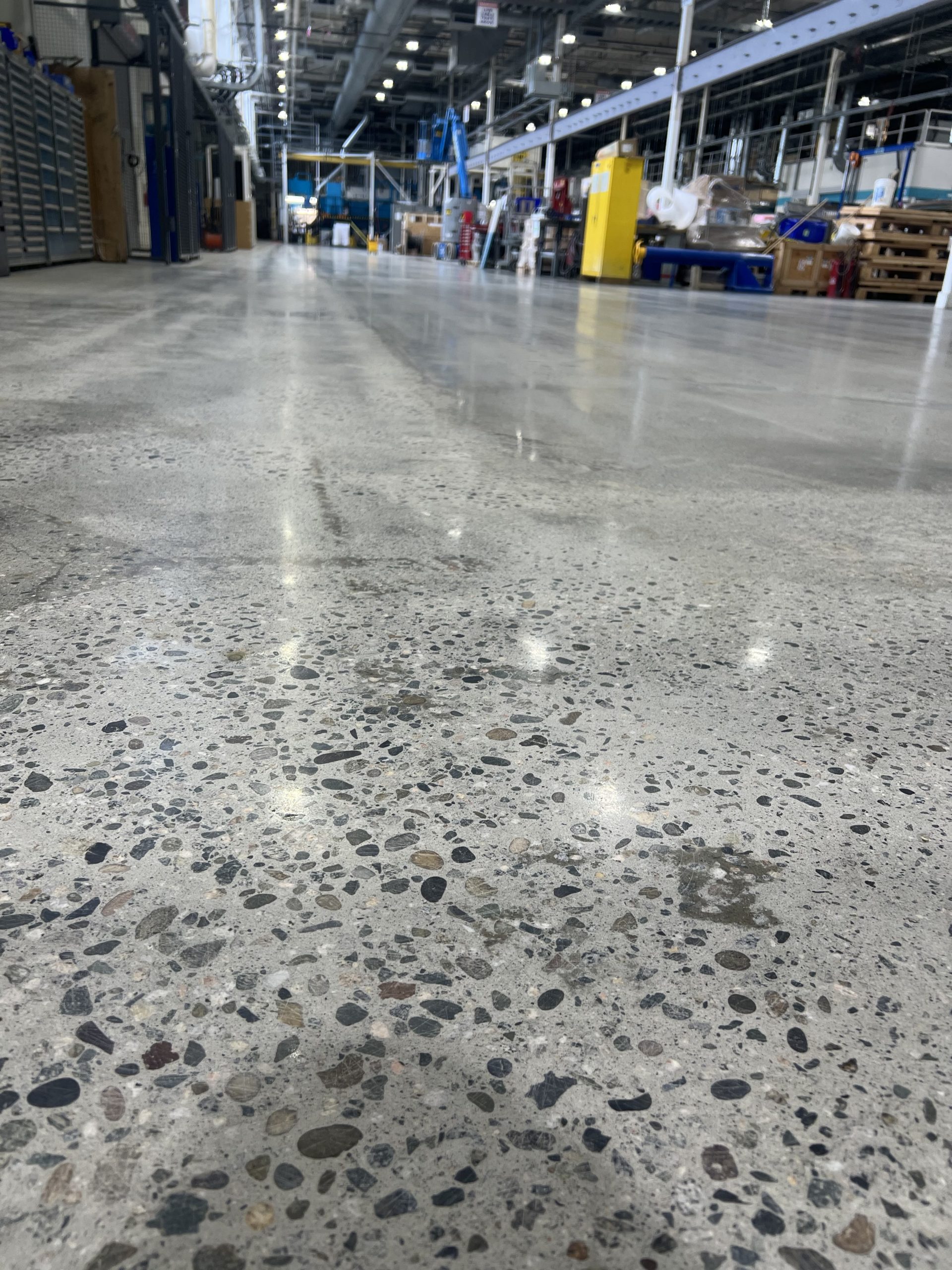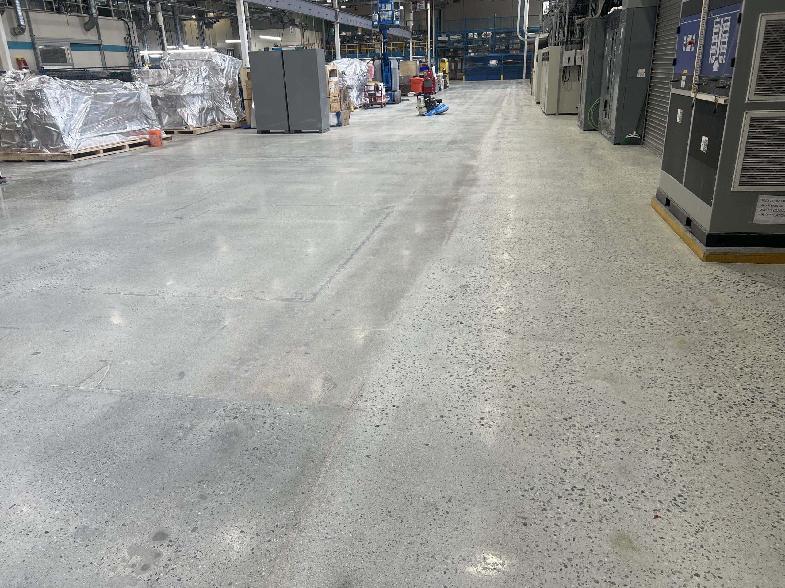 This polished concrete system significantly upgraded the facility’s functionality and appearance, providing a resilient flooring solution built for industrial performance.