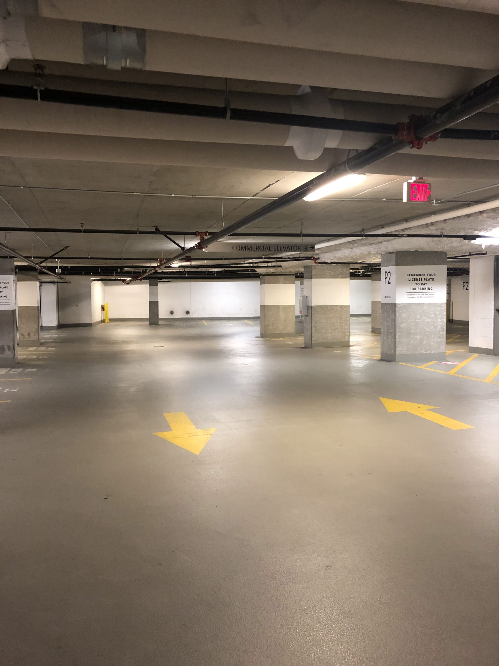 The finished surface provides improved durability, dust control, and enhanced visibility, while maintaining a clean, uniform appearance across the parkade. Safety markings, traffic flow indicators, and designated areas were integrated to support daily vehicle and pedestrian use.