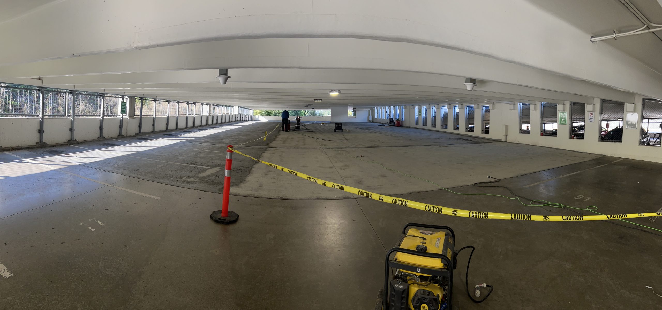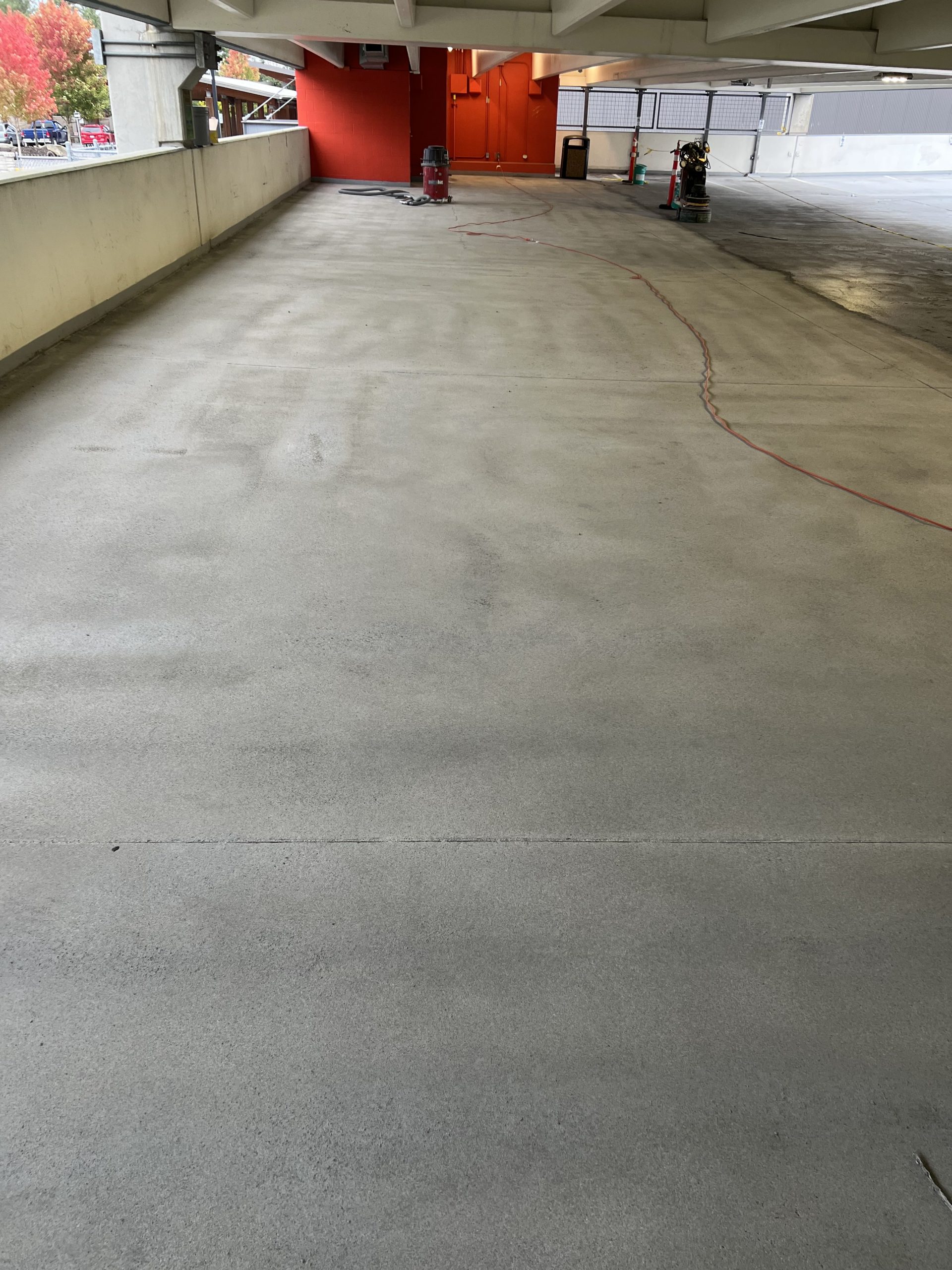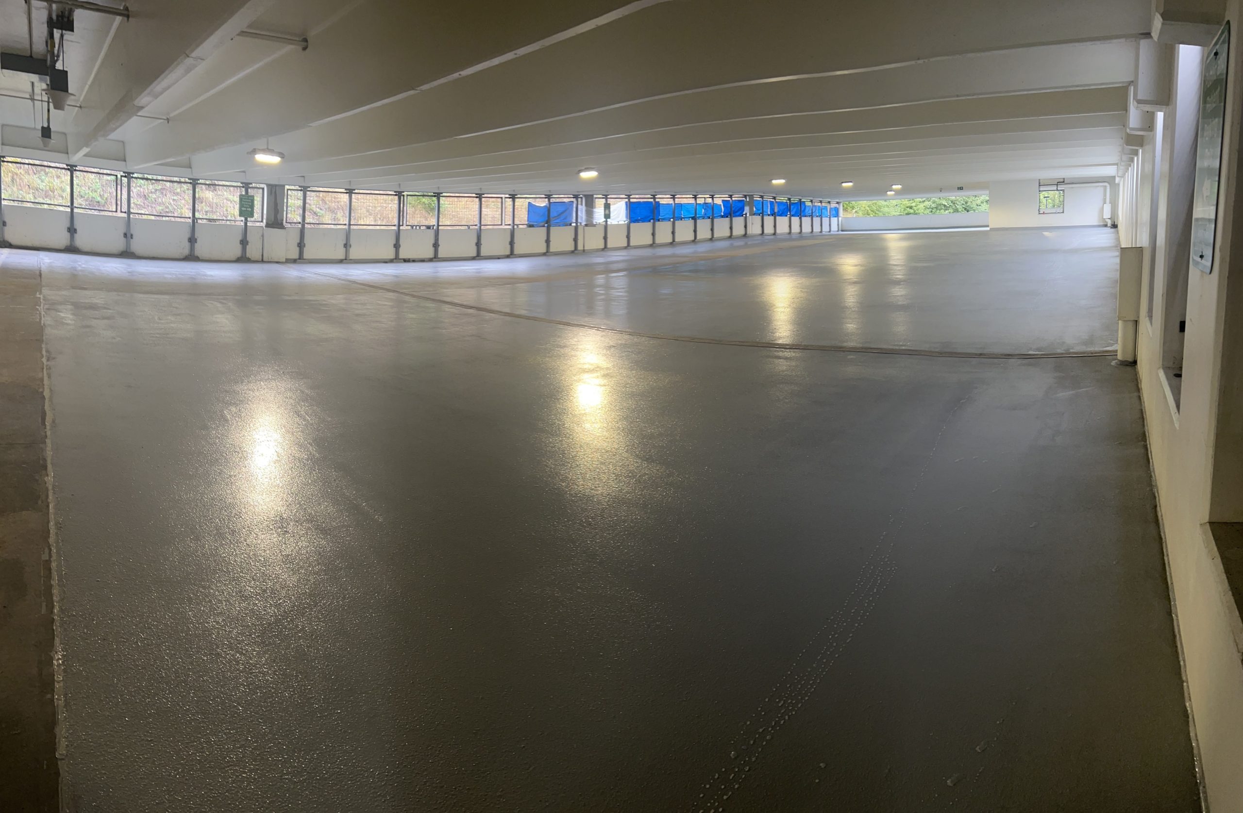 This large-scale project included restoring heavily worn areas, resurfacing drive lanes, and applying a high-performance, slip-resistant coating throughout the parkade.