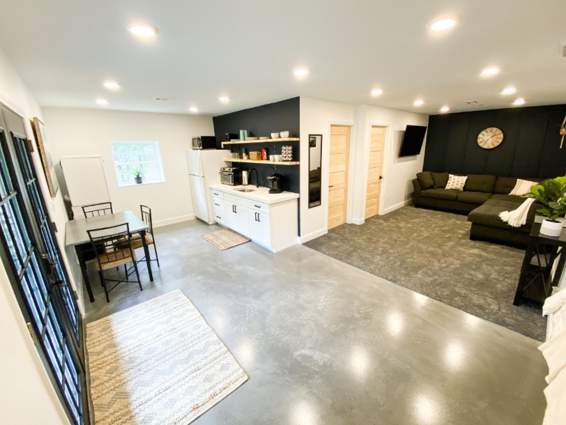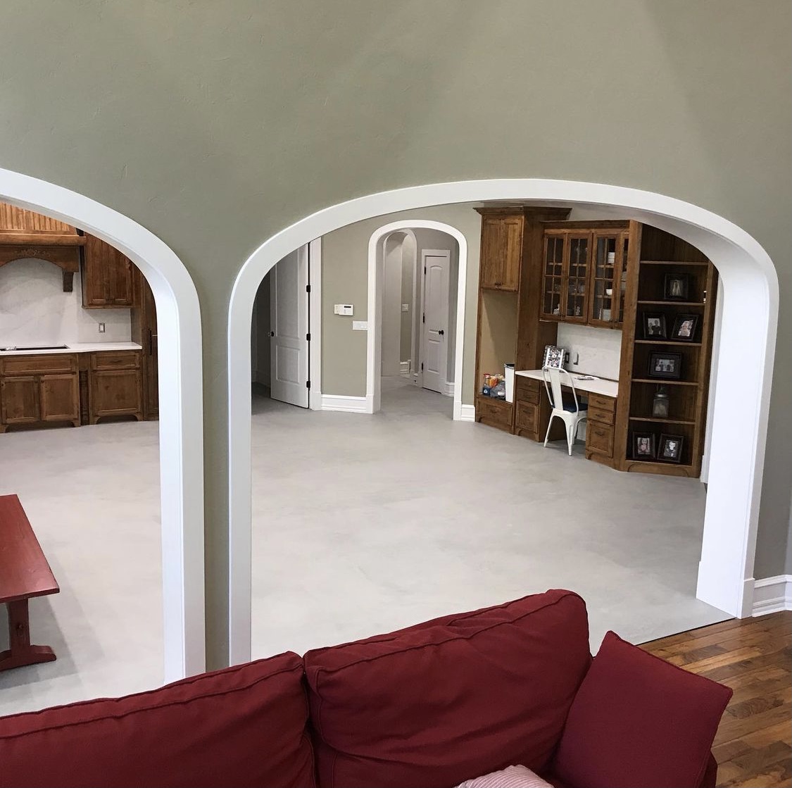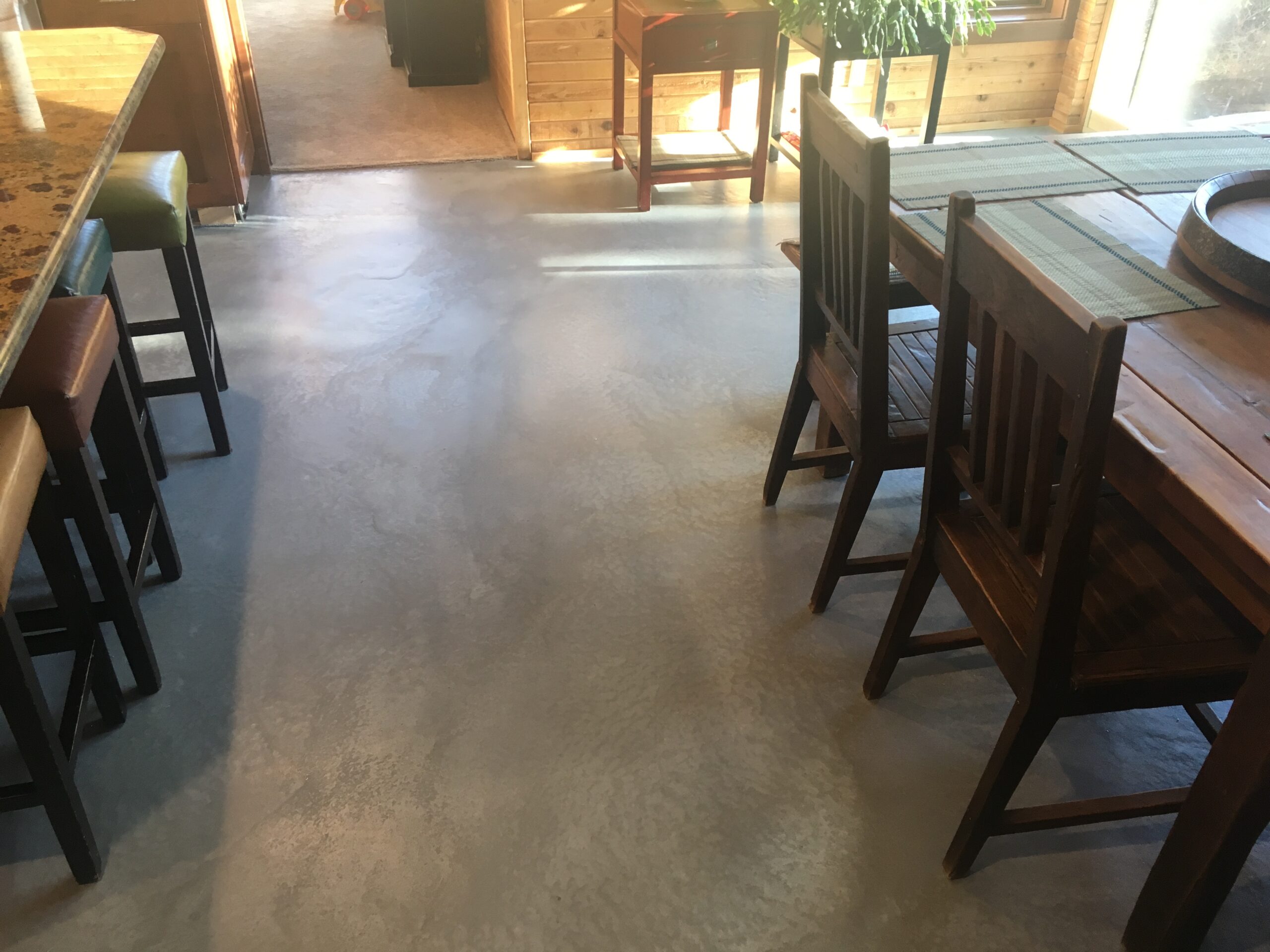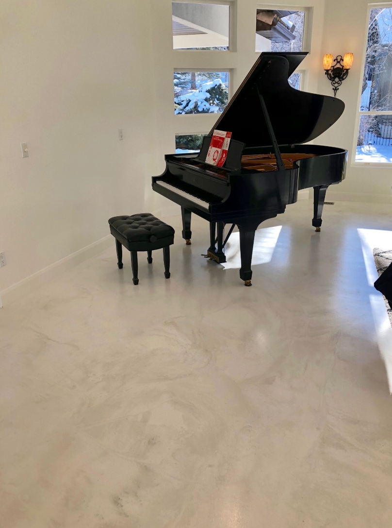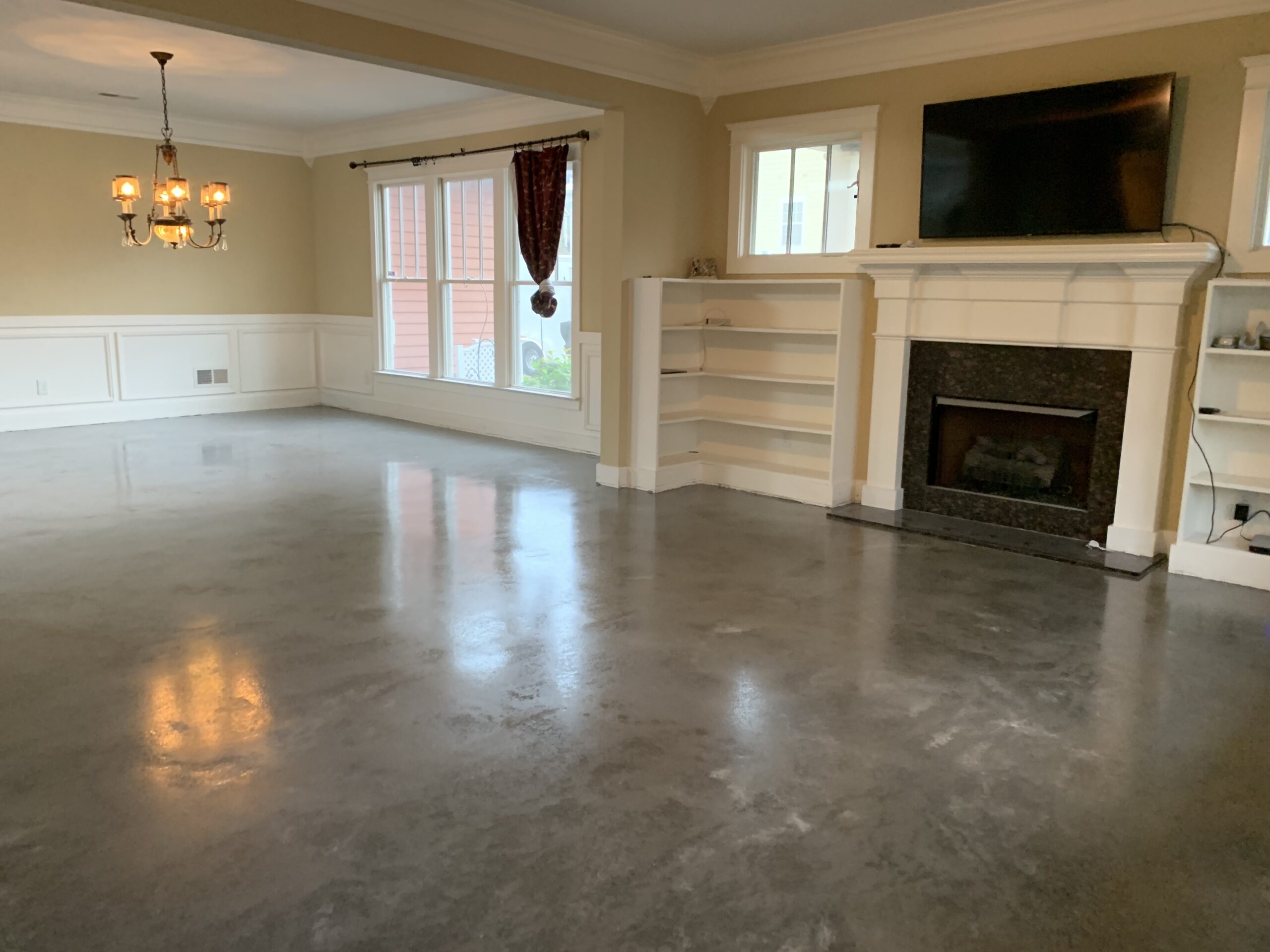 The finished floors feature smooth, seamless surfaces with subtle movement and natural variations, highlighting the versatility of concrete as both a functional and aesthetic material. In residential spaces, the polished concrete delivers a refined, contemporary look while maintaining durability and ease of maintenance. In commercial and hospitality-style environments, the floors provide a professional, upscale appearance capable of withstanding high foot traffic.