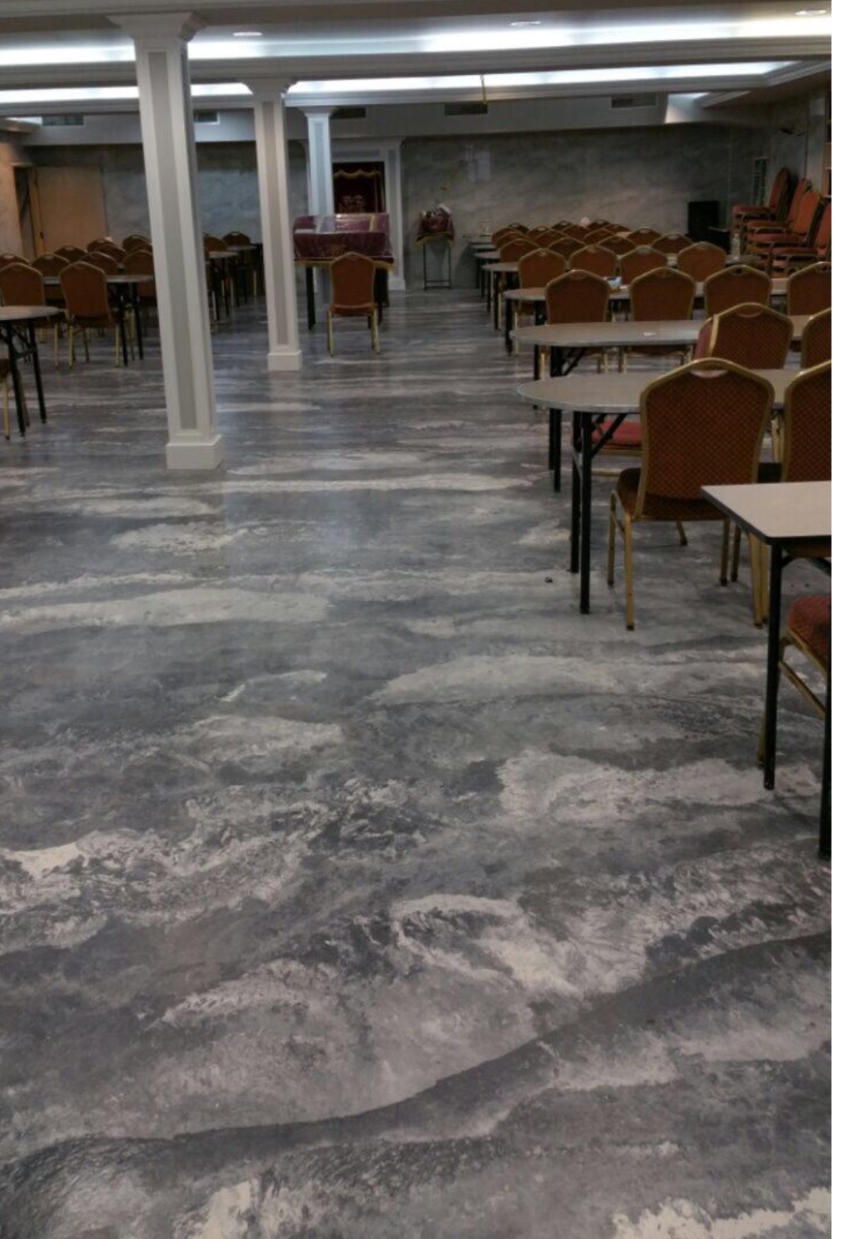 Attention was given to surface preparation, consistency, and final sheen to ensure long-lasting results and a uniform finish throughout each space. The combination of concrete topping and polishing allowed for creative flexibility in tone and texture while enhancing the overall brightness and openness of the interiors.