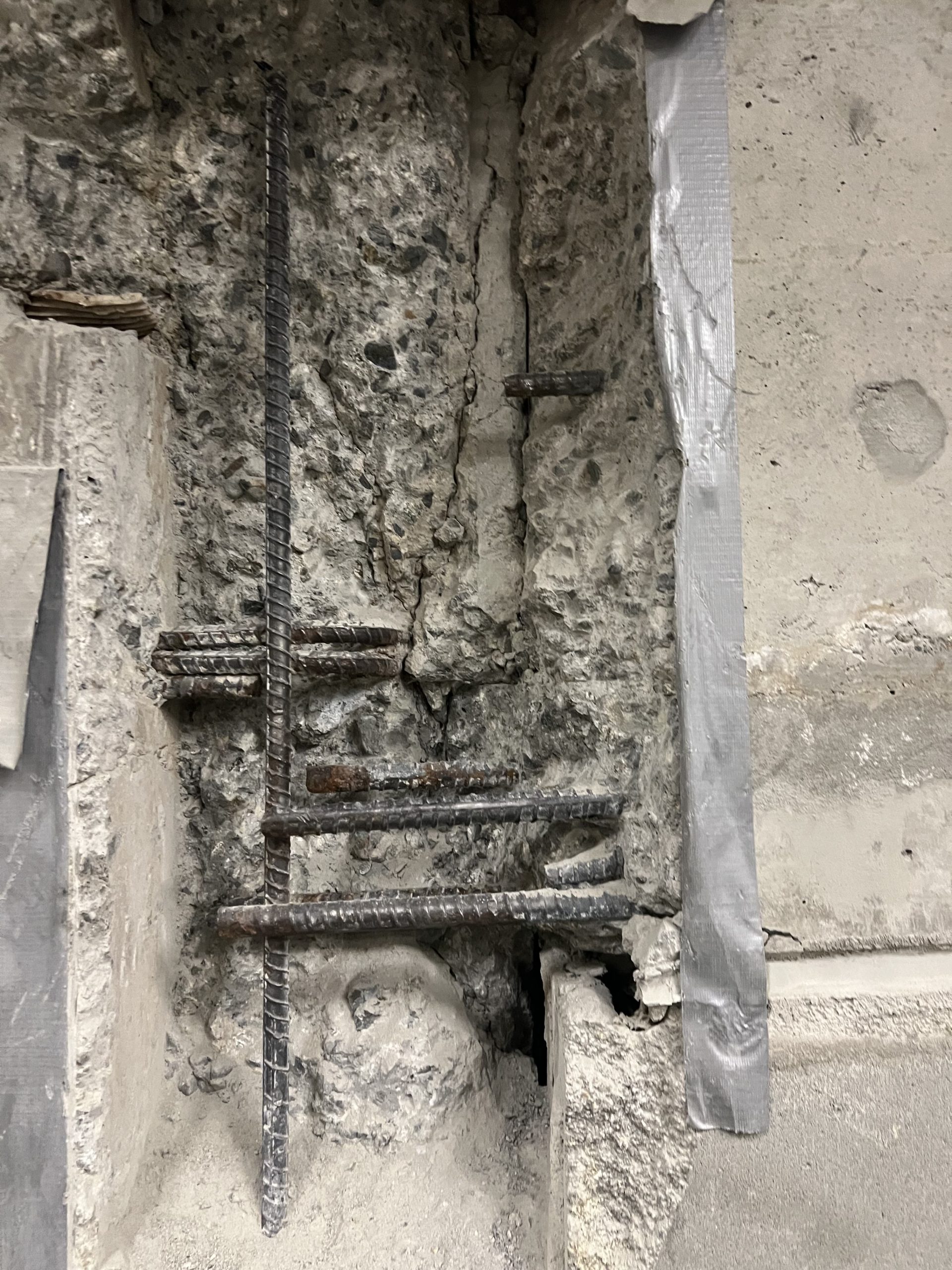 The process began with exposing and preparing the damaged areas, including removal of loose material and cleaning of cracks to ensure proper bonding. Steel reinforcement was inspected where exposed, and deteriorated sections were stabilized prior to repair. Cracks were then sealed and injected using specialized repair materials designed to penetrate deep into the concrete, restoring strength and preventing future water intrusion.