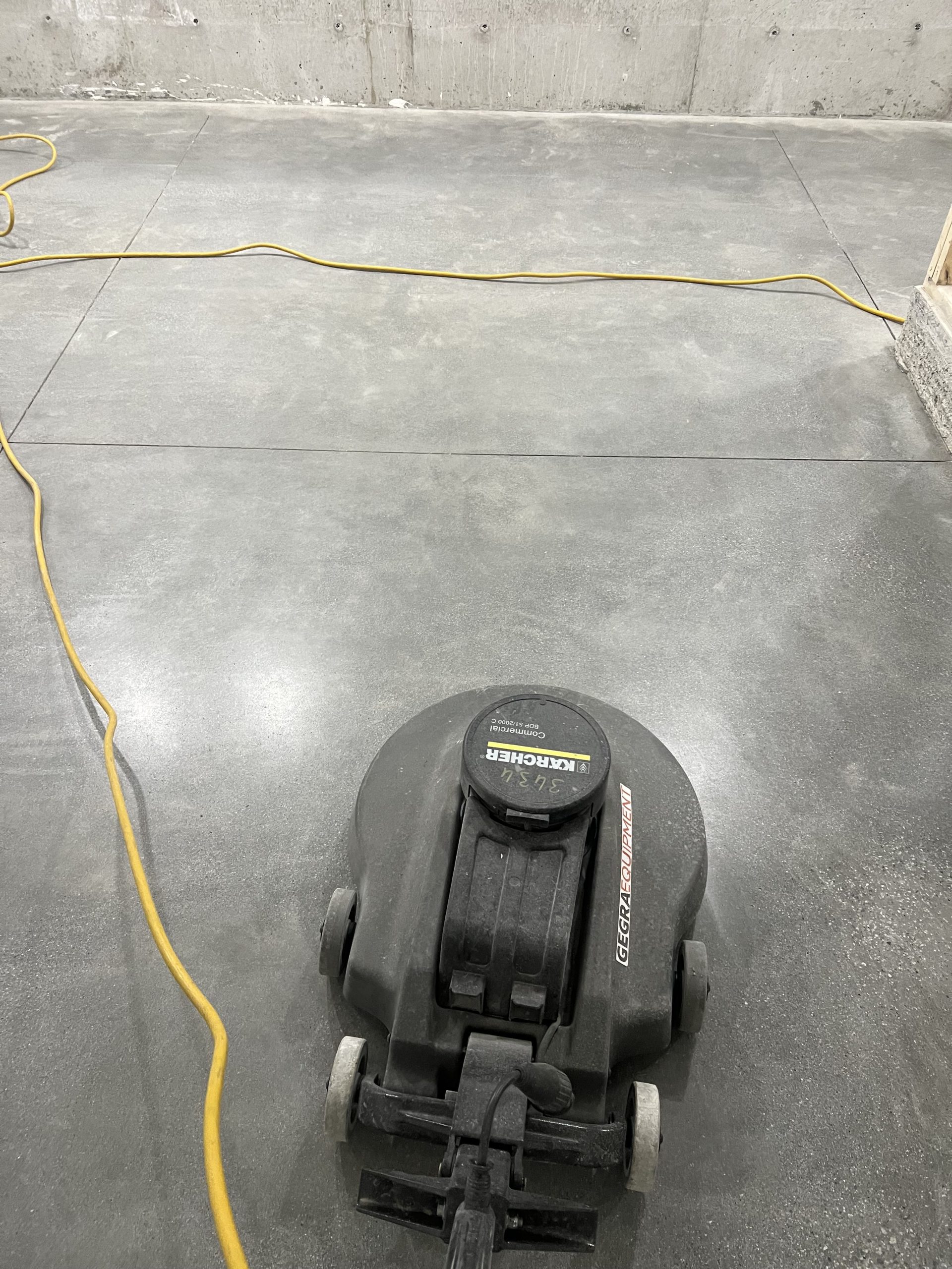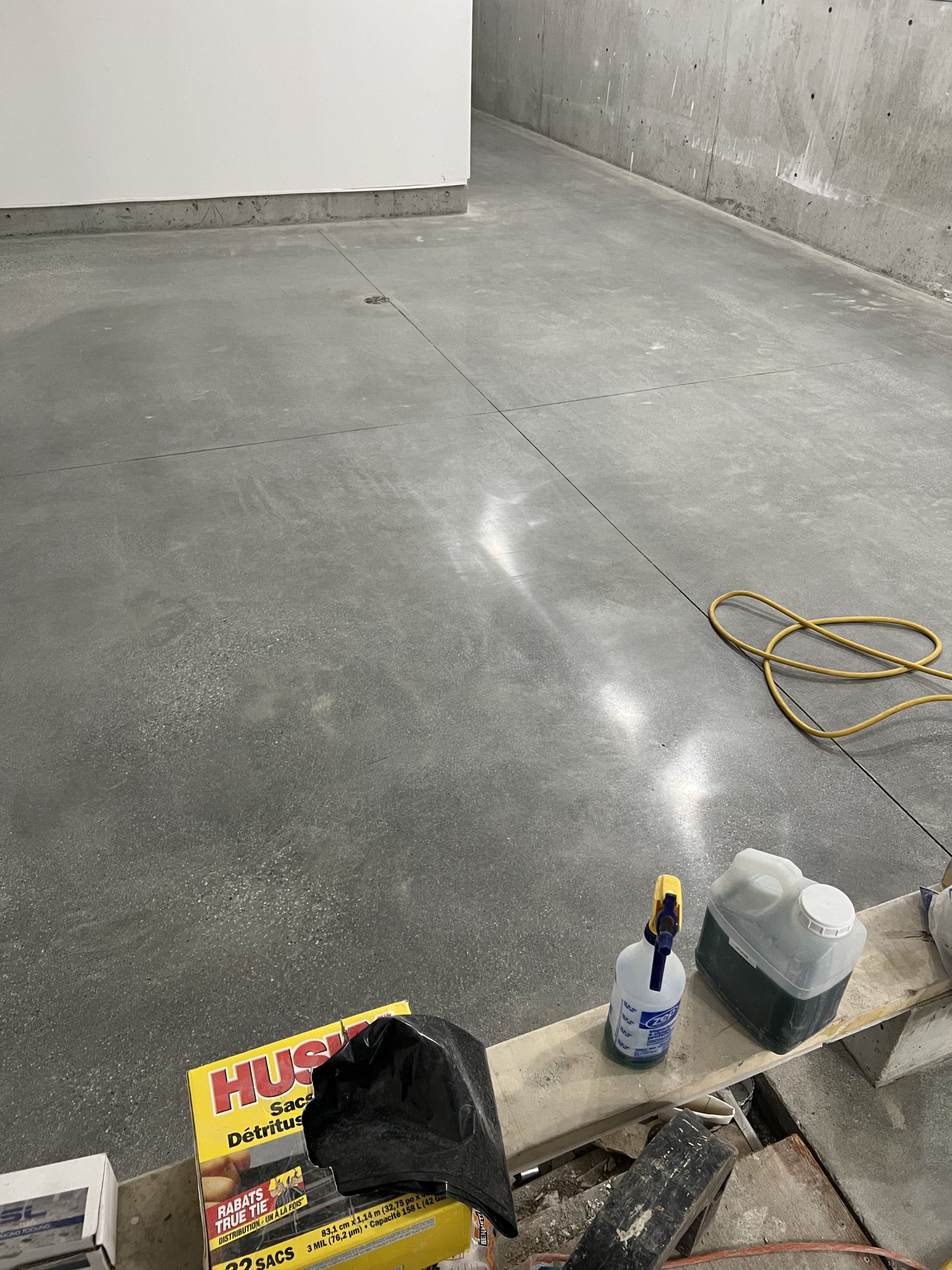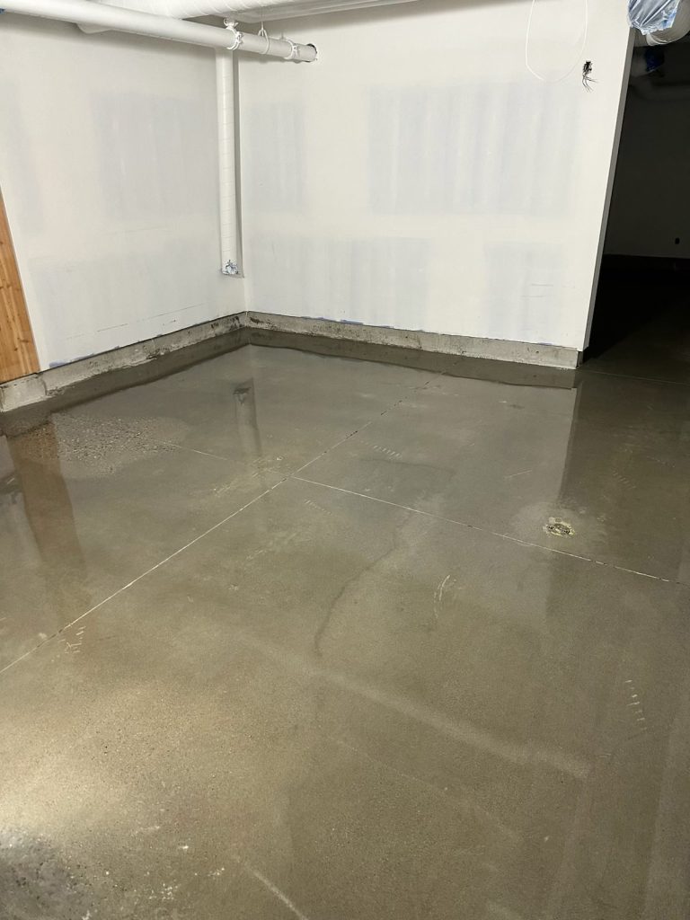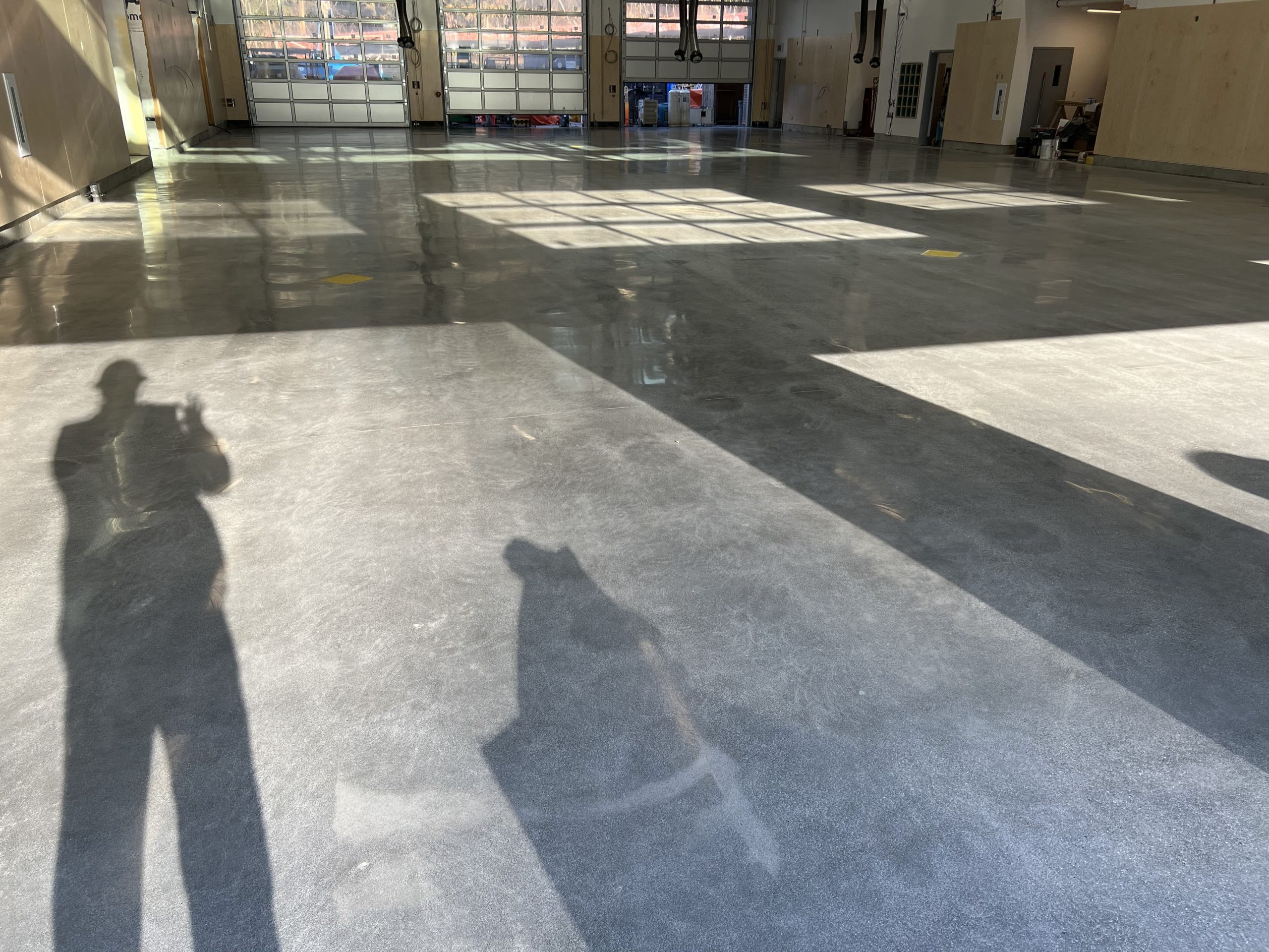 The finished floors feature a smooth, refined concrete look with a consistent sheen that improves light reflectivity throughout corridors, rooms, and operational areas. Expansion joints were carefully respected, and edge details were finished cleanly to ensure a seamless transition along walls, doorways, and structural elements.