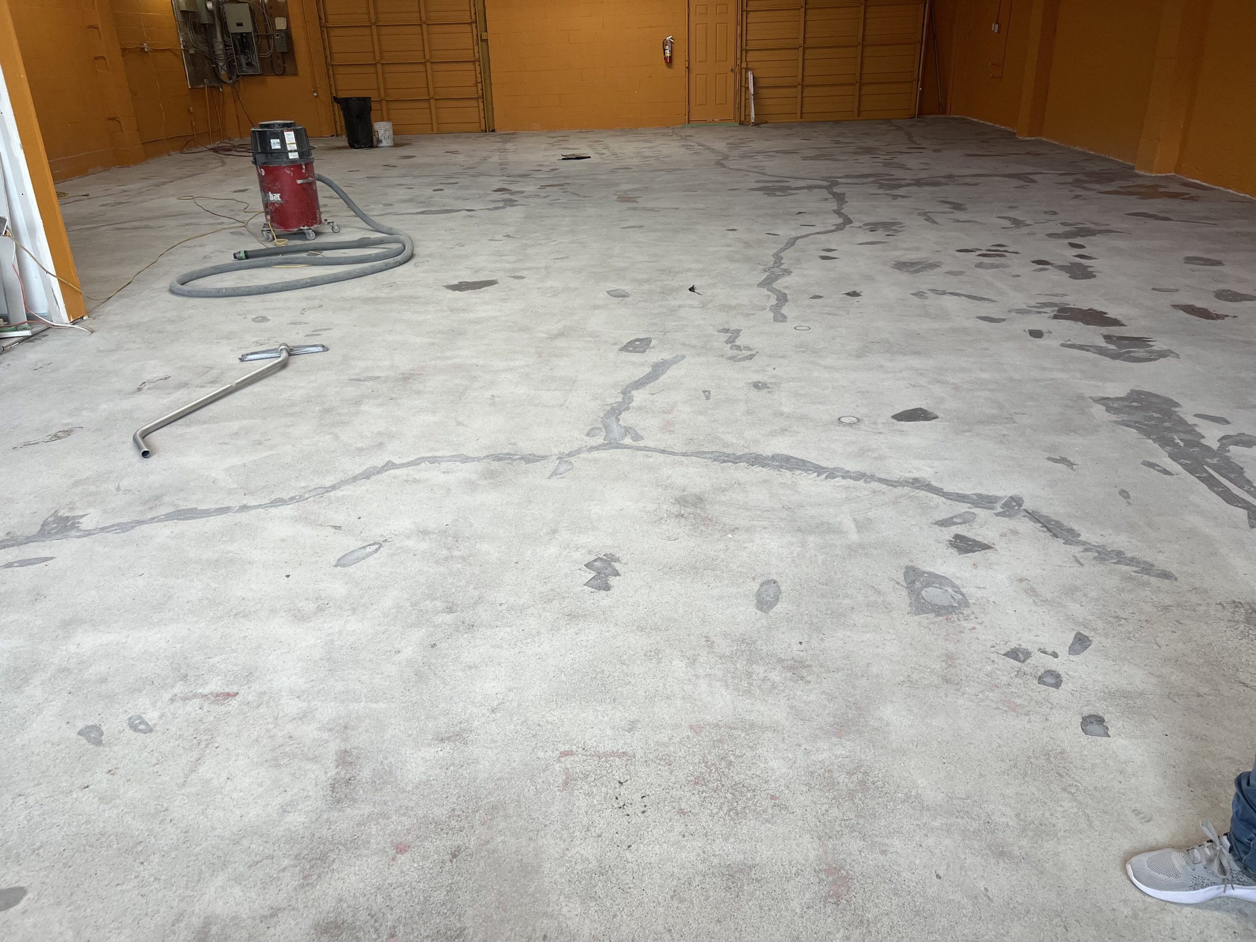 This project at Goldline Motors focused on transforming a worn, stained concrete slab into a clean, durable, and professional-grade flooring system suitable for an active automotive workspace. The existing floor showed visible cracking, surface contamination, uneven texture, and heavy wear from years of vehicle traffic and equipment use.