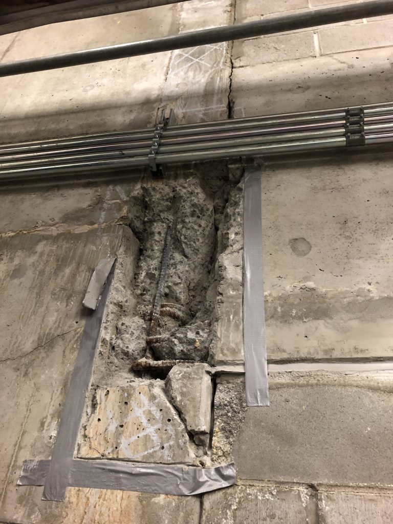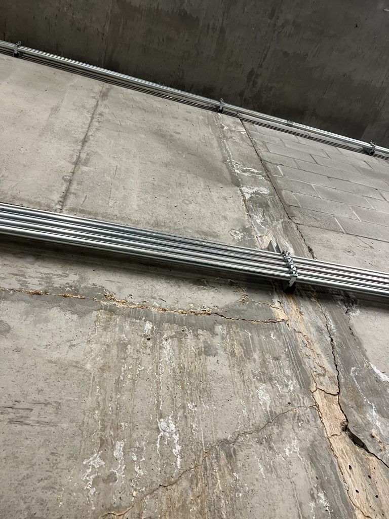 This project at Metropolis at Metrotown focused on targeted parkade concrete crack repair and structural restoration within underground parking and service areas. The scope addressed visible cracking, water intrusion pathways, and deteriorated concrete conditions affecting both cast-in-place concrete walls and block assemblies.
