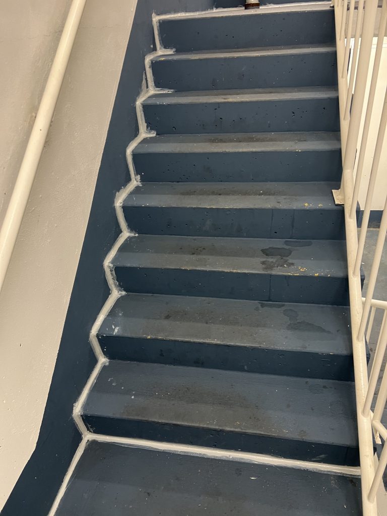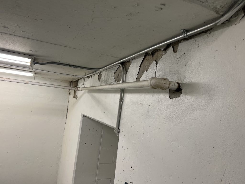 Work included routing and preparation of structural cracks, removal of loose or compromised concrete, and exposure of affected reinforcing steel where required. Areas with corrosion staining and moisture migration were treated to stabilize the substrate and prevent further deterioration. Cracks and voids were carefully repaired using compatible repair materials designed to restore continuity, strength, and durability to the concrete elements.